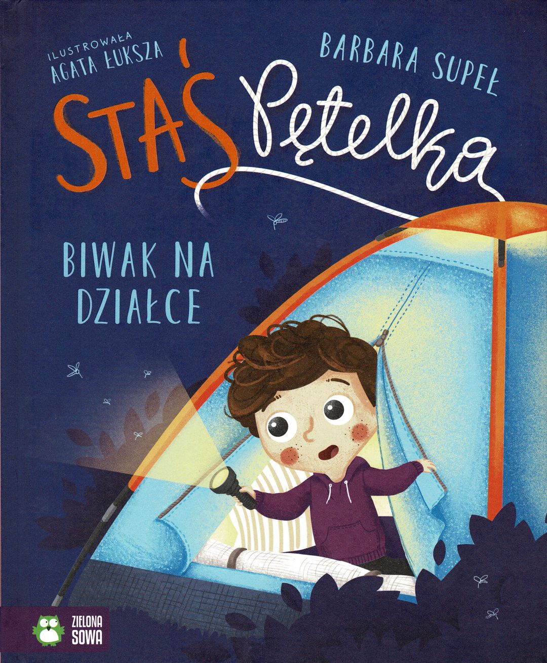 Staś Pętelka pomoże Twojemu dziecku oswoić się z tym, co nowe i nieznane! Kolejna część przygód o Stasiu Pętelce. Tym razem chłopiec wraz z kolegą i jego rodzicami spędzają weekend na działce. Będzie fajnie, ale i nieco strasznie, bo chłopcy przenocują w namiocie… sami. To będzie dla nich czas pełen wyzwań, wrażeń i nowych doświadczeń. Staś z przyjacielem spróbują być odważni i samodzielni, ale czy uda im się pokonać swoje lęki? Bogato ilustrowana seria dla dzieci ukazuje istotne wydarzenia z życia przedszkolaka. Każde dziecko odnajdzie tu znane mu sytuacje i wraz ze Stasiem spotka się z emocjami, których samo doświadcza. Warto również poznać Jadzię Pętelkę, młodszą siostrę Stasia – bohaterkę serii dedykowanej maluszkom! [lubimyczytac.pl].