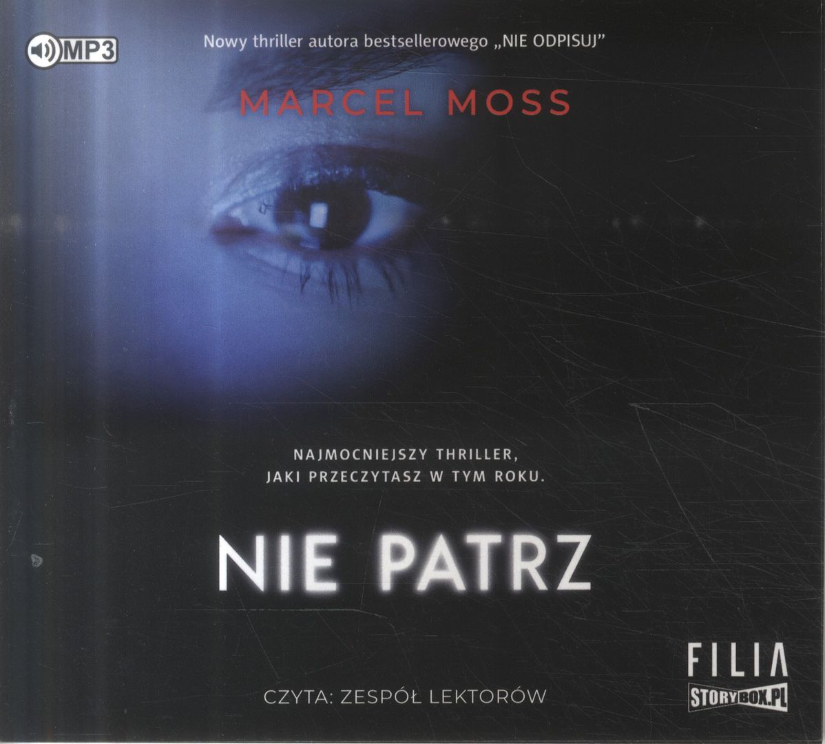Nie patrz [Dokument dźwiekowy] / Marcel Moss. - Poznań : Wydawnictwo Filia ; [Piaseczno] : Heraclon International. Storybox.pl, copyright 2020. - 1 płyta audio CD (8 godz. 35 min) : digital, stereo ; 12 cm.