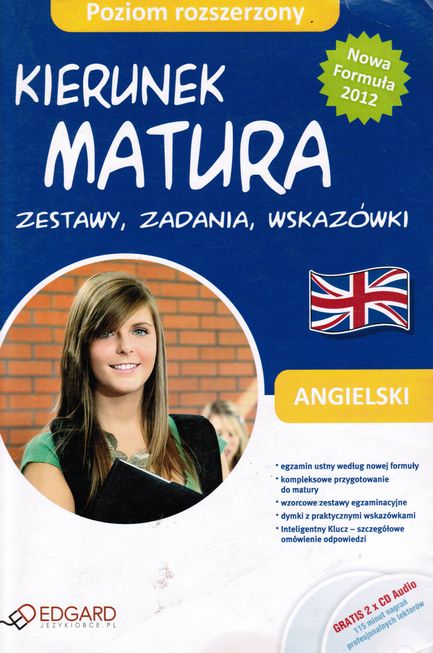 KIERUNEK MATURA Zestawy, zadania, wskazówki obejmuje książkę zawierającą wszystkie rodzaje zadań, jakie można spotkać na maturze, zestawy egzaminacyjne oraz płytę z nagraniami. Przygotowuje do egzaminu pisemnego z języka angielskiego na poziomie podstawowym oraz do nowej formuły egzaminu ustnego obowiązującej od 2012 roku- uzupełnia, weryfikuje i utrwala zarówno wiadomości, jak i umiejętności nabyte podczas nauki w szkole czy na kursach językowych. Polecany jest przede wszystkim osobom, które chcą sprawdzić i doskonalić swoje umiejętności przed przystąpieniem do egzaminu.